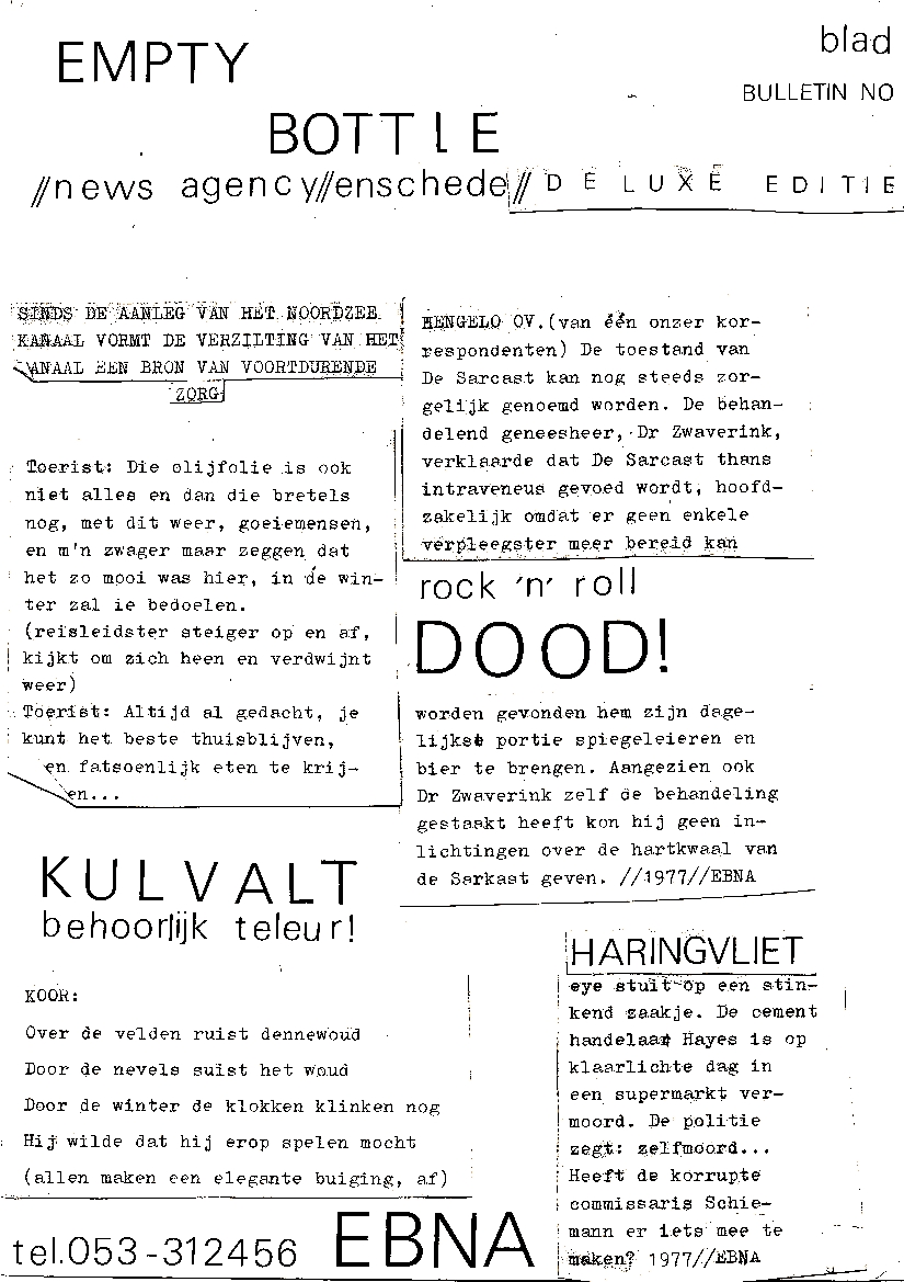 Het archief van EBNA, de Empty Bottle News Agency
